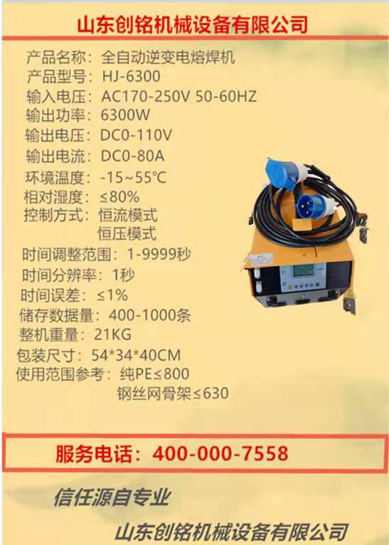 山东创铭机械设备有限公司专业经营pe管热熔机、电熔焊机等相关焊接设备。产品经iso9001质量体系认证,质保一年,终生维修!!公司秉承“客户至上,服务至上”的经营理念,以可靠的质量和快捷的售后服务来赢得客户的广泛青睐。有需要的朋友欢迎来电咨询:    微信同号   邹经理