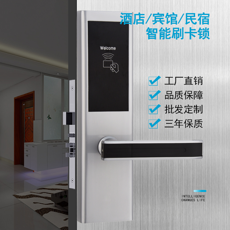 1、门锁的设置:在同行中,都需要用各种授权卡、房号卡、时间卡来一把一把的设置门锁,操作起来很不方便,升级后的门锁,不需要任何的设置工作,在第1次使用时用客人卡开门就可以了。授权信息、房号信息、时间信息一次设置到门锁。有效的提高了安装调试工作的效率。深受广大客户的欢迎。
