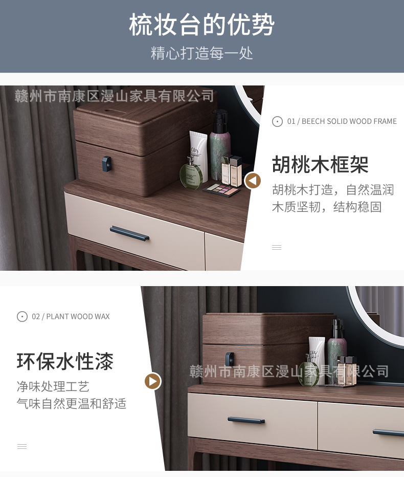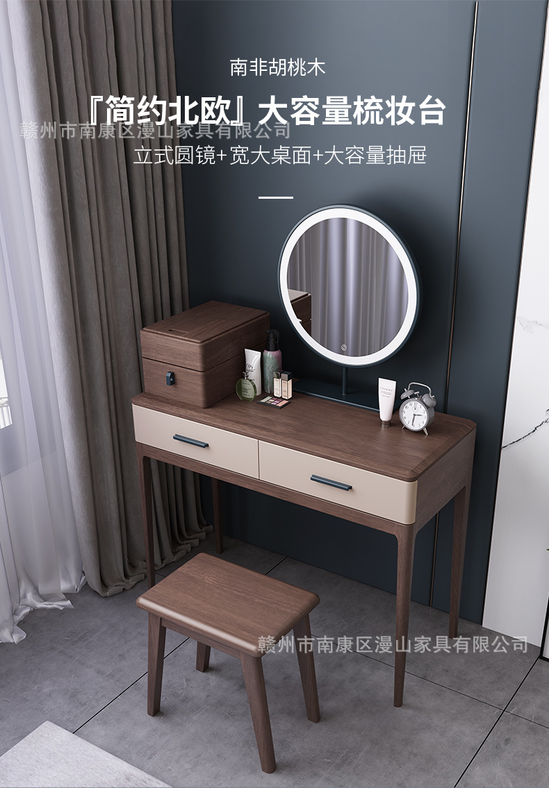 北欧胡桃木全实木梳妆台凳现代简约收纳柜主卧室网红ins风化妆桌