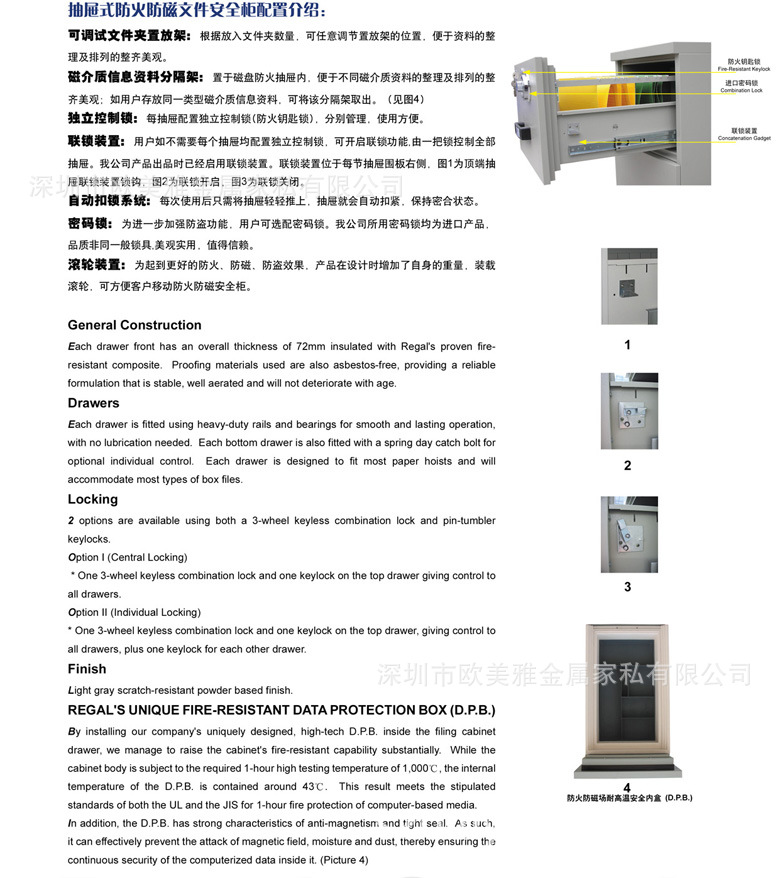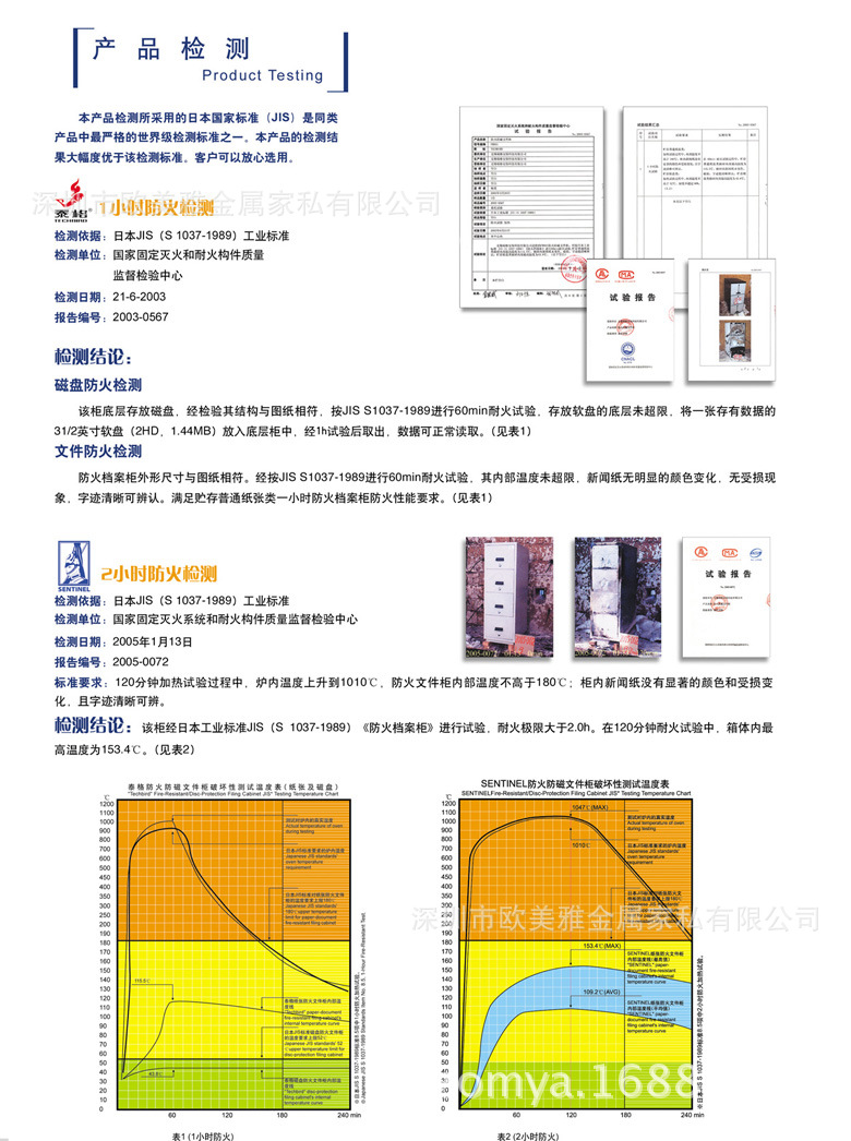 泰格防火防磁文件柜严格按照日本国家批准(JIS)进行检测,各项指标检测结果均大幅度优于标准,客户放心选用。