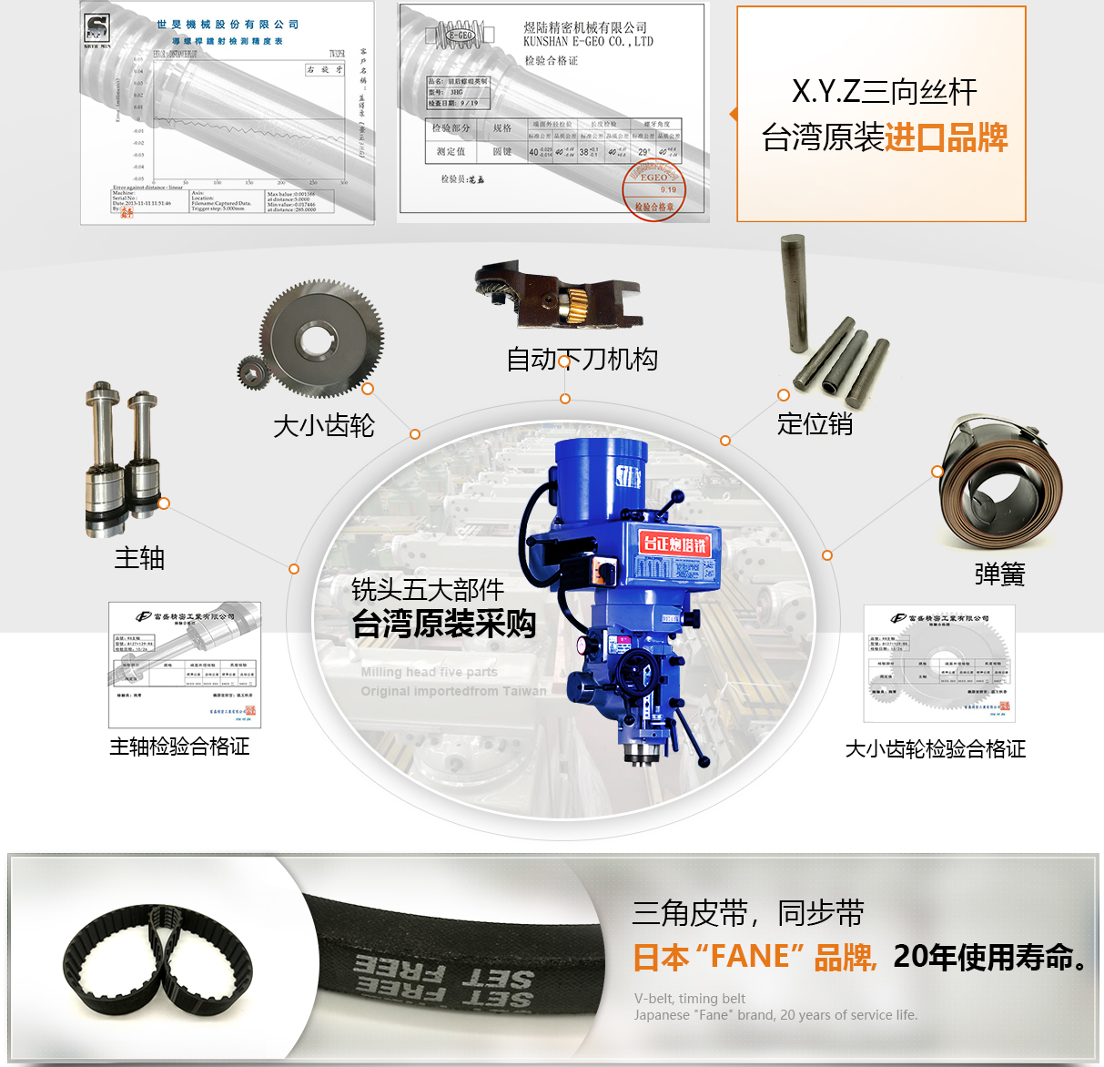 台湾原装精密部件,精度品质的体现