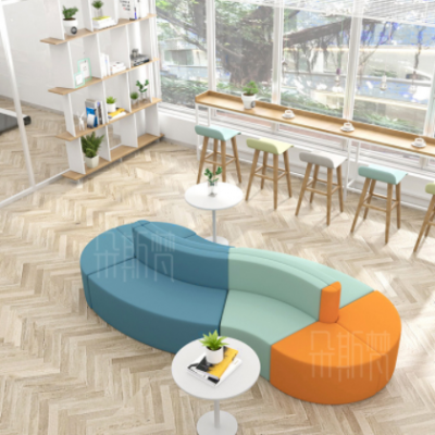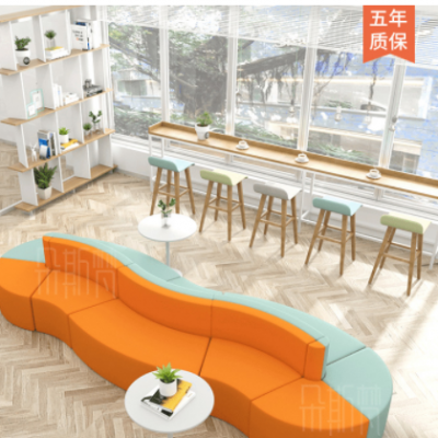 休闲皮艺沙发教育培训机构早教幼儿园办公大厅休息区双面异形卡座