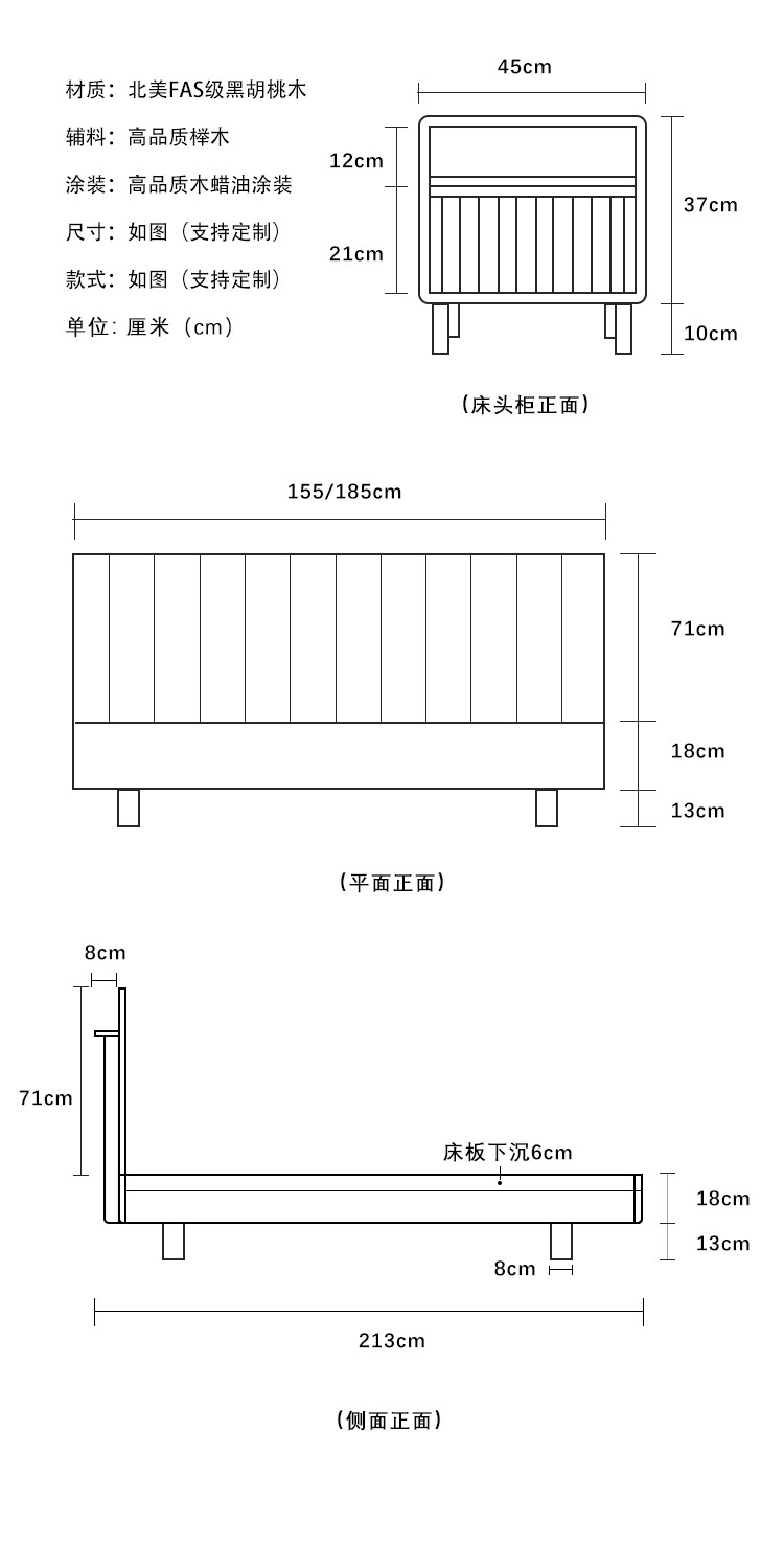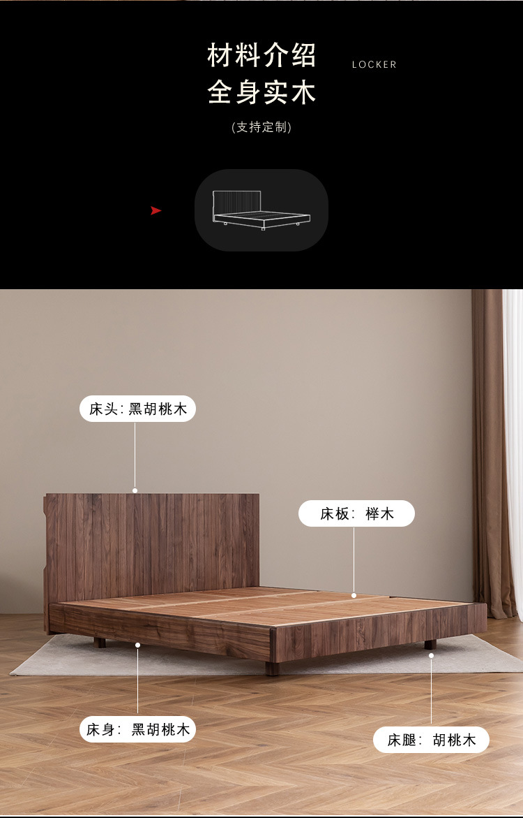 颜色黑胡桃木(松木床板),黑胡桃木(榉木床板),整体黑胡桃木,黑胡桃木床头柜