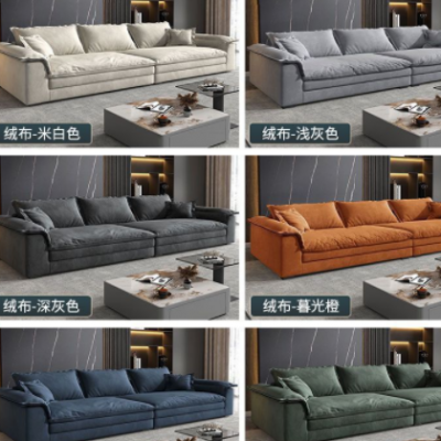 侘寂风意式客厅轻奢现代简约小户型乳胶超软超深坐宽直排布艺沙发
