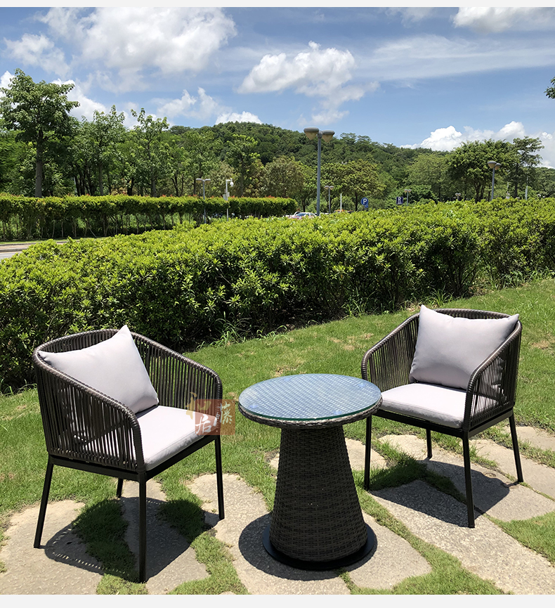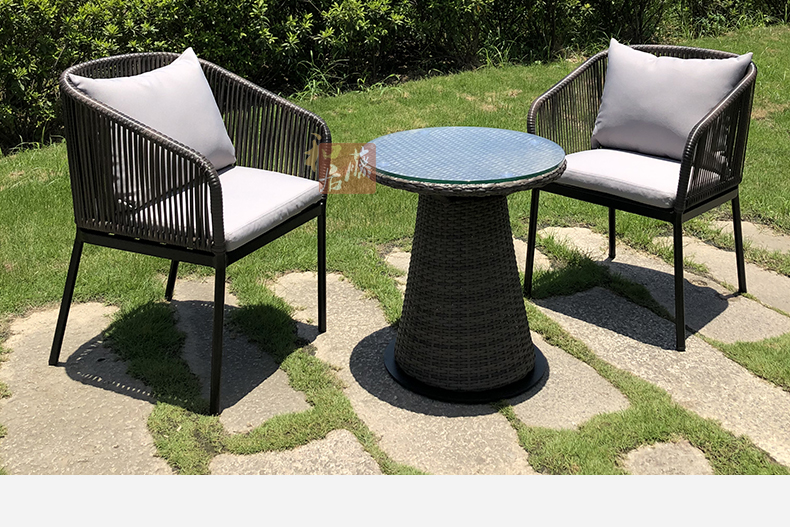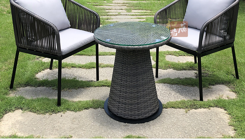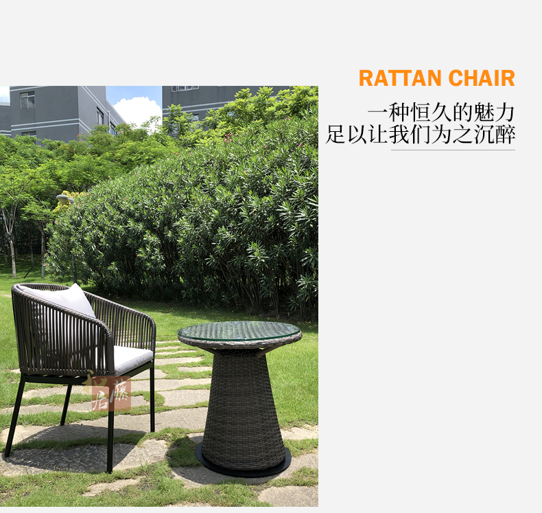 和藤居HC022#厂家直销花园藤编休闲椅 藤艺洽谈椅茶几套装 户外编藤桌椅三件套