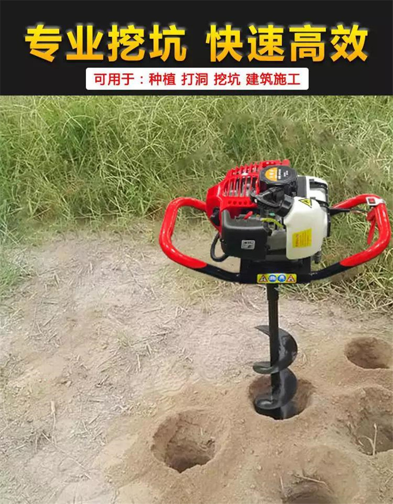 手提式挖树坑机能够让人们从繁重的体力劳动解放出来,广泛应用于植树造林,栽种果林、篱笆、及秋季给果树施肥等。该地钻动力强劲有力,外形美观,操作舒适,劳动强度低,适合各种地形,效率高,便于携带及野外田地作业。这款挖坑机既适合单人操作,又可双人操作,经济实用。