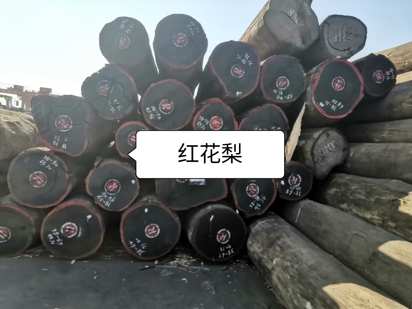 进口我国市场的主要从尼日利亚、喀麦隆远程而来。上市的原木大小头比例正常,尖削度小,大头稍有突出的肿胀,小头圆,一般的材长12m左右,材身不见枝桠断面,可想它的主干之长,小头直径70-80cm,大头90-100cm。有时还发现胸径140cm左右,8个月后现场观察。