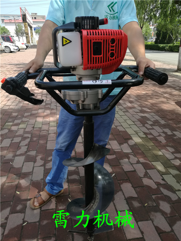 雷力小型刨树坑机图片 栽树挖洞机方式 小型种树打坑机是二冲程汽油钻孔设备行业里面功率大,动力强的一款机器,由157CC大排量的汽油发动机为动力,配置专用型减速箱体,双人加长手柄,操作中安全舒适,强压减振内装置,具有振动小,好操作的优点。本机大可配置500*800MM的大规格钻头,进行种树,栽树,植树的打坑环节作业,快速,使用范围广。主要在缸体总程,离合器,启动器上面在传统的汽油挖坑机上面做了很多的变更,本款缸体结实耐用 ,增加多项保护,不易拉缸,好保养。离合器弹簧做成了整体式,不会在受大阻力是绷断或弹出。启动器改为易启动新款,后弹更受阻,一次即可启动。是现代二冲程挖坑机里面轻巧,功率大的机器