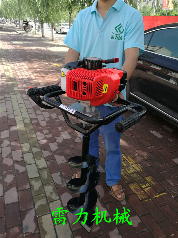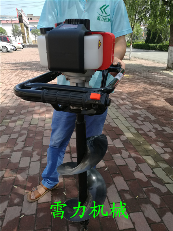 雷力小型刨树坑机图片 栽树挖洞机方式 小型种树打坑机是由单人或双人手扶着进行打坑作业的机具,汽油机为动力,配置有减速机,油门控制系统,操作手柄以及螺旋钻头组成,是现代园林业,农业及林业种植必备产品。施工中振动小、噪音低、无污染;动力强劲,适合于各种土地,冻土、沙石地等。双人操作,打坑速度快,省时省力。操作轻松。体积小、重量轻、操作方便、维护简单、耗油省、噪音低、易启动、成孔效率高、运行费用低、价格便宜等特点。.设计新颖、灵活、合理,性能稳定可靠,作业效果好、效率高,深受广大用户欢迎。当雷力小型刨树坑机图片 栽树挖洞机方式 小型种树打坑机进行钻坑时,启动油门开关,拉动启动手柄加油门,小型挖坑机钻头就行匀速下钻到要求的位置,无级变速以170-400的速度手动进行调制油门大小,本机适用于各种狭窄空间钻孔,开始采集挖坑机关键部位配件进行检测,该新型挖坑机械系统相比于传统人工手提式挖坑机钻孔作业,可增加40%以上的操作范围和工作效率,降低故障率,提高钻孔效率。不加油门钻头不转,等完成一系列挖坑工作后才关掉熄火开关。本机全检出厂,每一道工序都经过认真检查,质量好,动力强,可长时间连续作业。您可以放心使用。本机钻头和主机分为两部份包装,内置泡沫固定,外箱多层加厚,适合长途运输,能够安全无损的到您的手中。整机保修一年,7天内质量有问题可退换。