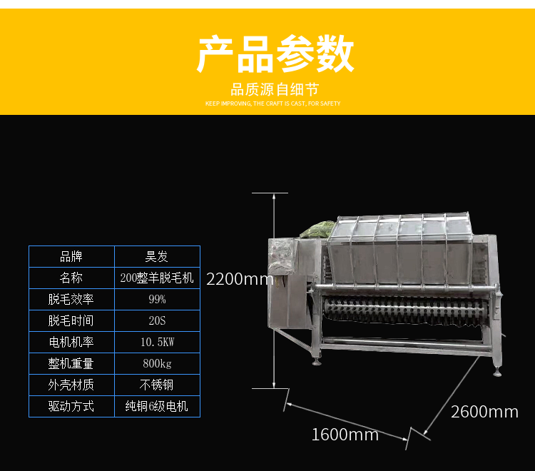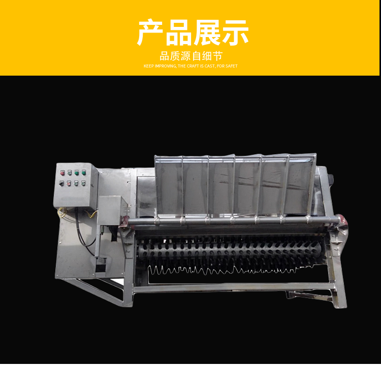 2)羊进入羊脱毛机前须进行浸烫,烫毛效果的好坏直接影响本打毛机的打毛效果。所以根据不同的羊种选择不同温度。并且羊头与羊身烫毛温度不一样,羊头需要的温度要高一些。季节的不同也会有所差异。
