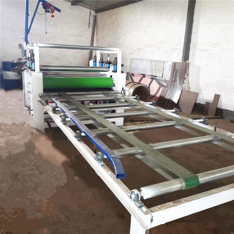 全自动电脑程控,自动完成涂胶,加热贴面.烘干.两次冷压,三次热压于一体,靠链条、链轮传送,结构紧凑合理,操作方便,速度可调。适用于防火板的表面贴面,还能将各种木质板(三合板、石膏板、密度板、刨花板)进行深加工贴面.如木纹纸、铝箔、免漆纸、高分子膜等.可生产各种花色的豪华装饰板.利润倍增,适合家具厂、人造板厂、乡镇企业和个体户接产.设备分为大中小多种型号,还可根据客户要求加工定做。
