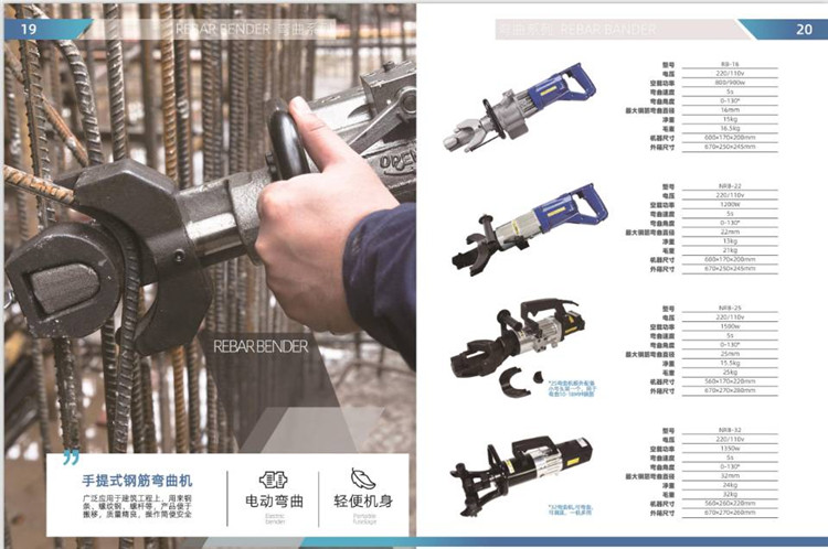 冷弯机是我国施工现场主要使用设备之一。我国在机械设备方面的发展,经过许多人才呕心沥血的研究,不断地创新改进,研制出的机械设备,以向全球各地开始销售。冷弯机在钢拱架结构的建设上,占着 地地位,有许多的施工现场由于在钢材上的加工,耗费了无数的人力、财力、物力,浪费了无数的资源才可建设成功,冷弯机在很大的程度上解决了一部分的施工问题。江苏扬州手持式钢筋切断机手持式钢筋切断机现货供应
