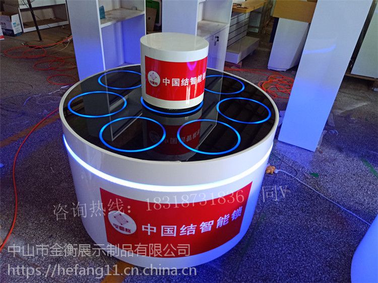 卡曼奇办公室玻璃门指纹锁展示柜 圆形旋转密码锁柜子