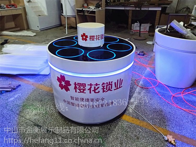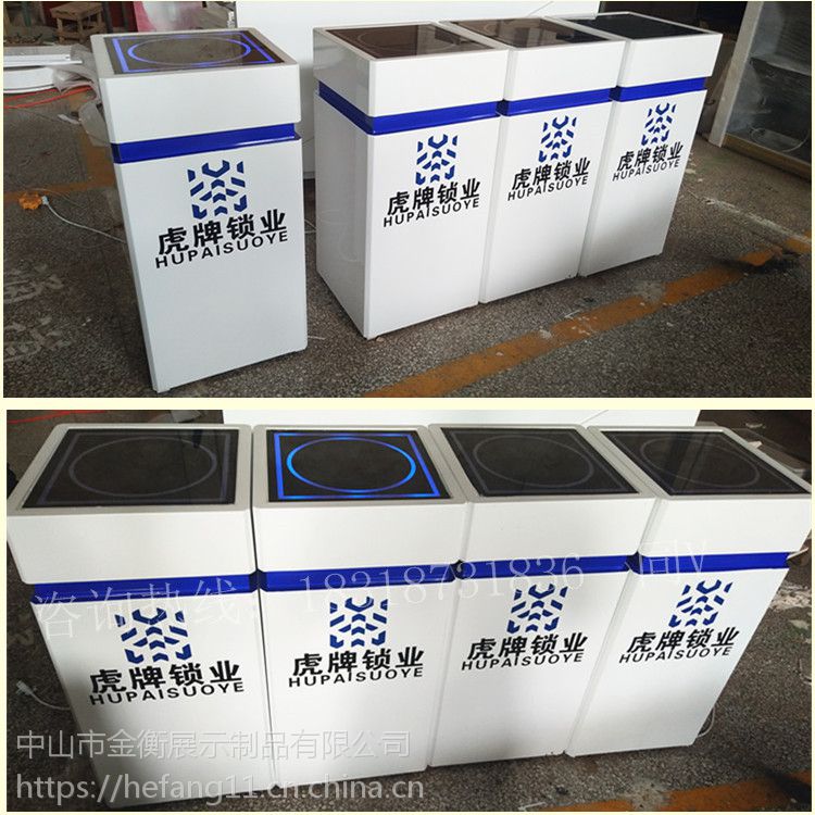 长沙豪力士云智能家用防盗门锁 木质白色烤漆指纹锁展示柜方形展示台