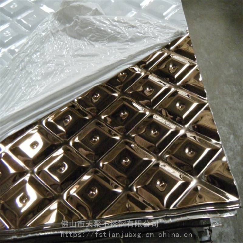 KTV茶几包边用黒钛小菱形压花不锈钢板 做门用玫瑰金压花板