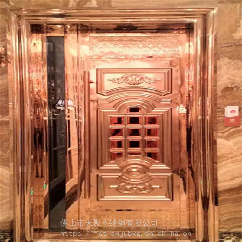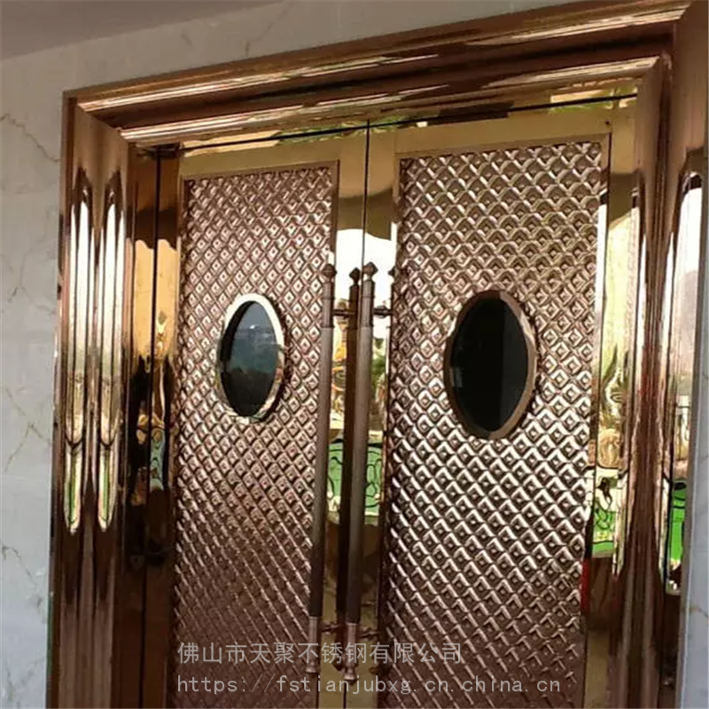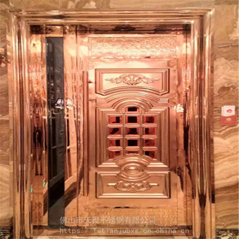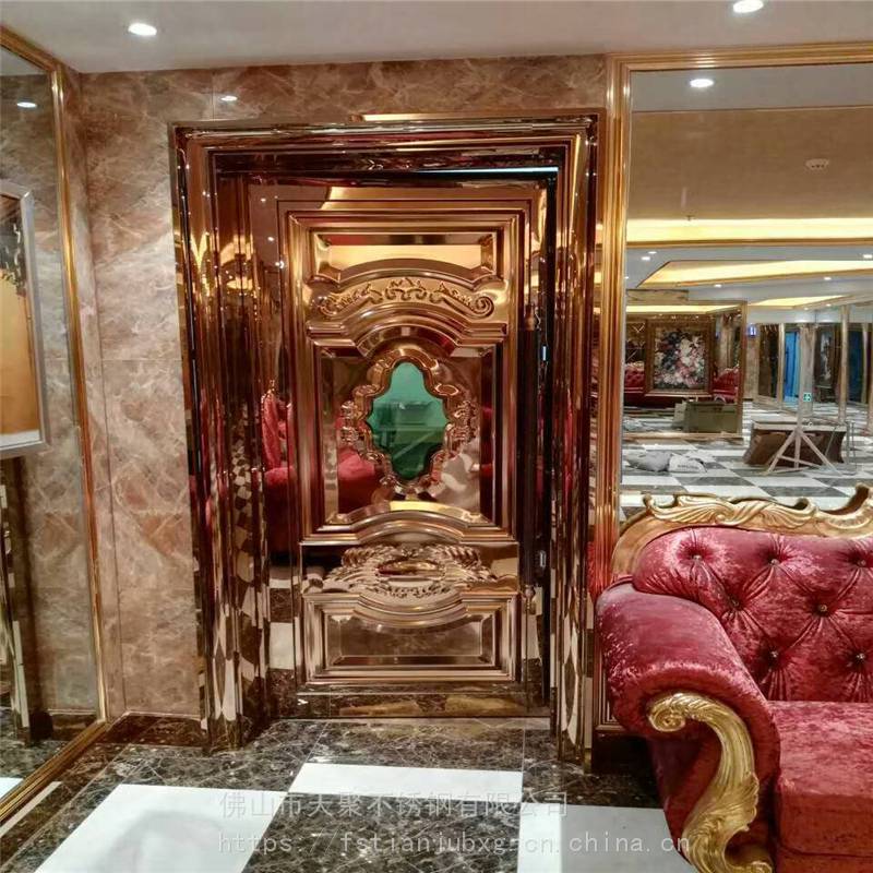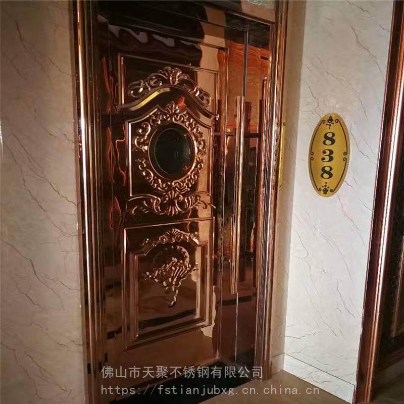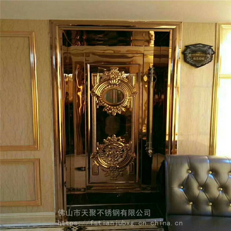 公司主要产品有不锈钢镀铜板,纳米仿古铜板,蚀刻板,喷砂板,乱纹板,镜面板。镀色玫瑰金,黑钛板,古铜板,玫瑰红,褐色等各种色板。哈尔滨KTV门板厂家 夜总会包厢门不锈钢压花门板 外凸好做门201玫瑰金镜面酒店会所包厢门用欧式不锈钢压花板 防火隔音门压花板