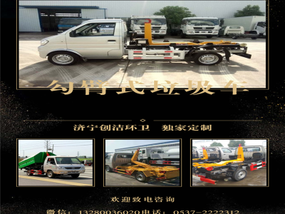 钩臂式垃圾车可方泛应用于城市街道学校等公共场所,一车可配备多处垃圾斗,整车带自卸功能,液压操作,方便倾倒。此车的箱体部分完全由液压系统来控制,在平日里可将车载垃圾箱放置到各个垃圾收集站,待垃圾收集满后,该车可直接开赴至垃圾站,通过液压系统的操控,可将垃圾车后座上加装的勾臂放下,挂住站内垃圾箱前端的连接点,将垃圾箱拉至车体的后座上,此时即可启动车辆,将垃圾运送至垃圾处理站内,进行自卸式倾倒。该车主要的优点就是可一车配多斗,一辆车就可以维持数个垃圾收集站的运转,效率高,且箱体为密封式设计,更环保。