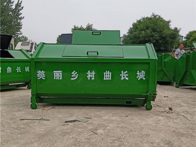 2.5方碳钢勾臂垃圾箱材质:优质碳钢,边板2mm,底板3mm,带启动撑杆,尾部密封条锁紧4个万向脚轮、滑道采用优质槽钢,箱内加强筋处理。3方碳钢勾臂垃圾箱尺寸外观:垃圾箱体外形尺寸2米长x1.5米宽x1米高。外观:垃圾箱造型美观大方,整体与环境协调,颜色选配天蓝色或豆绿色;箱盖采用手柄开启及脚踏板开启机构,有效防雨。通过踩下或松开踏板,实现上盖的开启和关闭,同时上盖设有打开抓手,人性化设计,便于垃圾的存放及密封。产品名称 钩臂垃圾箱 箱体形状 根据要求制作