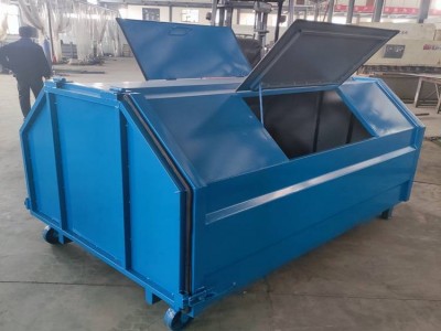 垃圾箱车箱可卸式垃圾箱,是指可以通过垃圾车实现垃圾箱垃圾卸载的一种,一侧钩臂焊接,通过钩臂车将垃圾箱吊起后对垃圾箱内垃圾箱进行卸载,其运输 距离远,运转便捷的垃圾箱装置。
