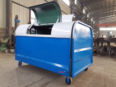 3、勾臂垃圾箱带盖密封式设计,可避免垃圾在收集与运输地程中的二次环境污染问题,还可避免雨水