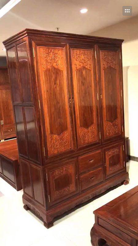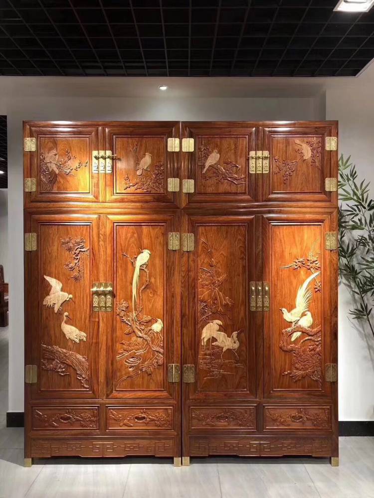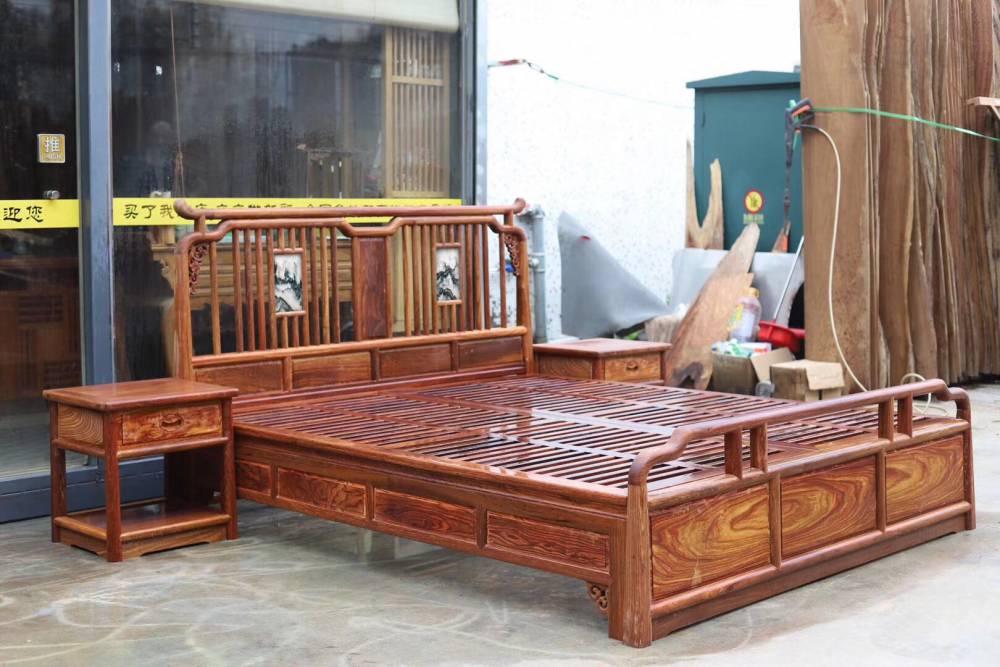 花梨木卧室系列家具 刺猬紫檀国色天香大床衣柜配套报价