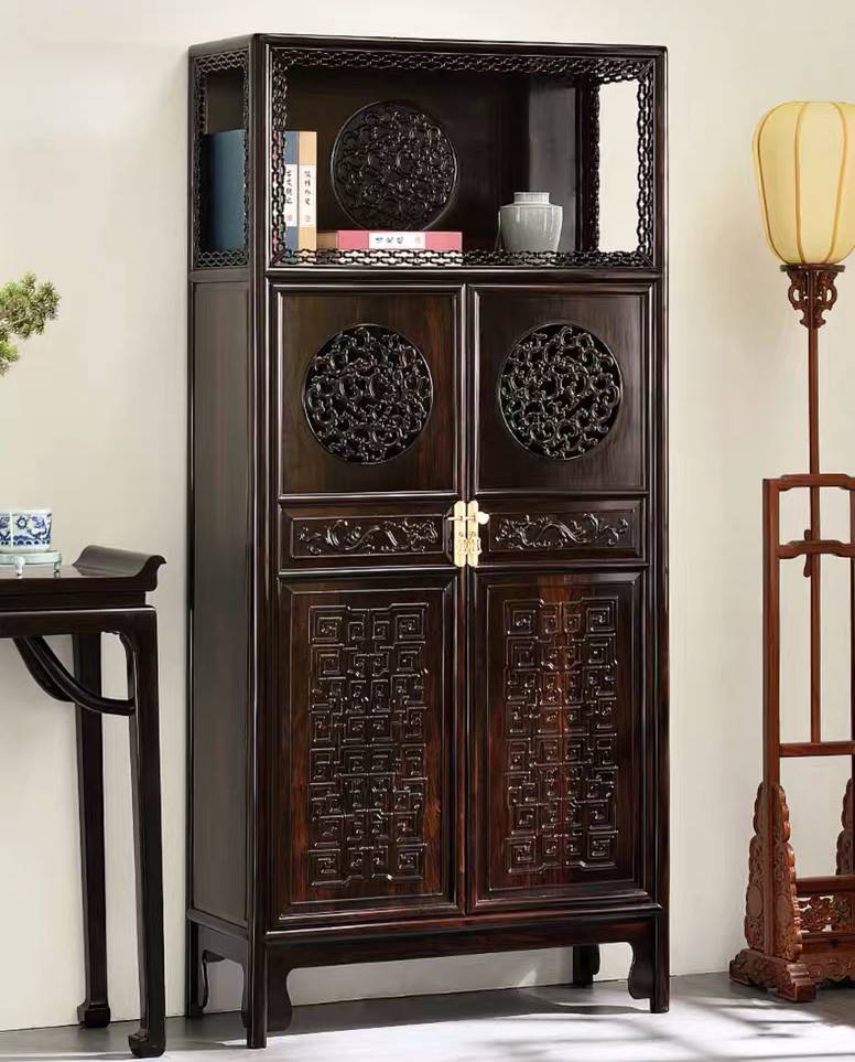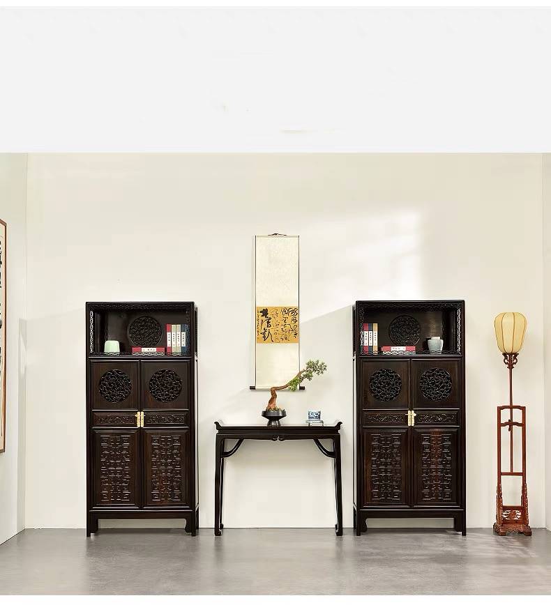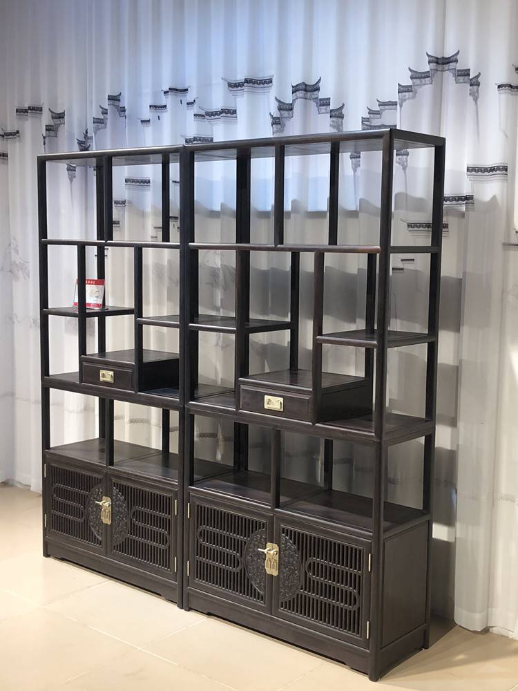 实木雕花书橱紫光檀红木家具组合新中式仿古书架明清古典书柜黑酸枝书雕