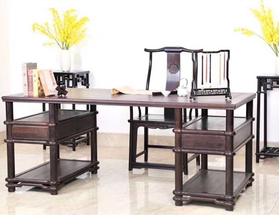 名琢世家紫光檀书桌家具好厂家 黑酸枝书橱书柜品质好企业