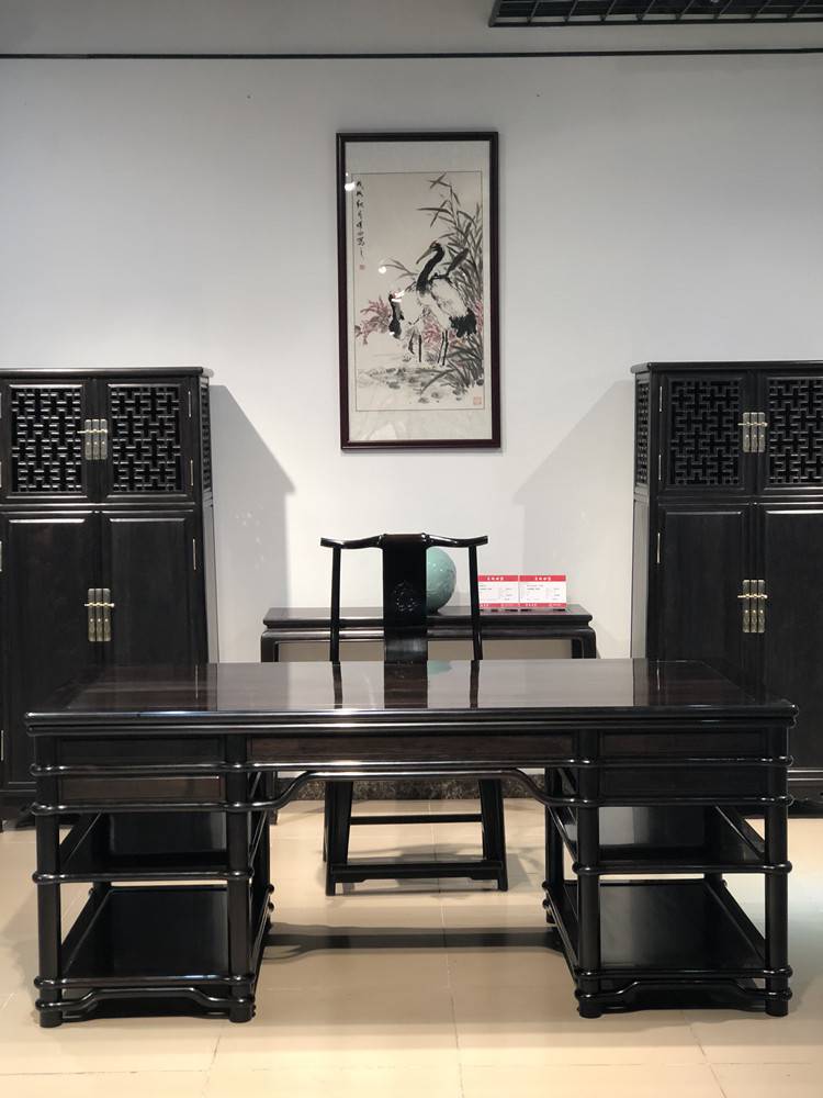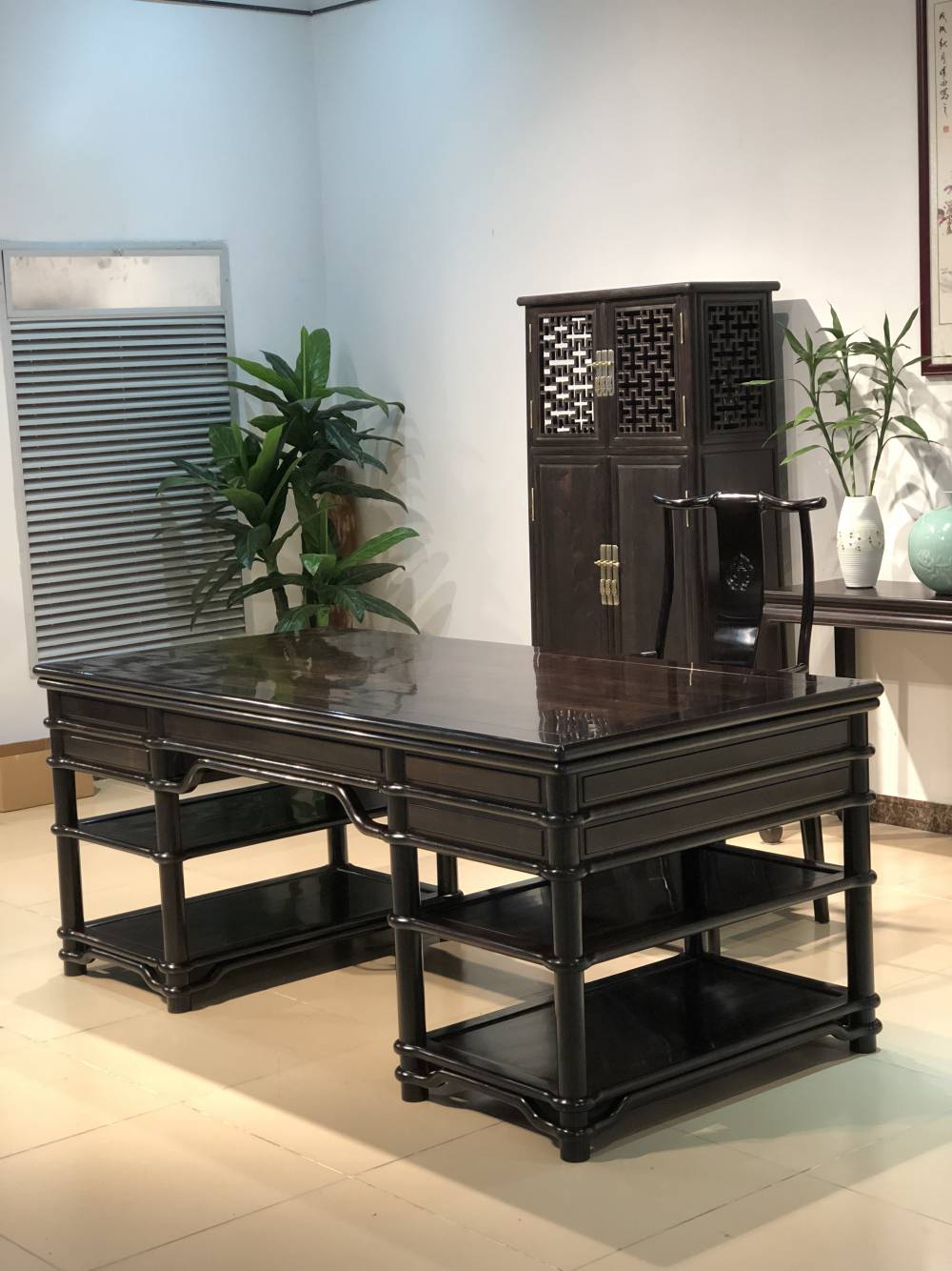 中山东非紫光檀书桌1.8米画案 黑酸枝书房书法写字台结构美感