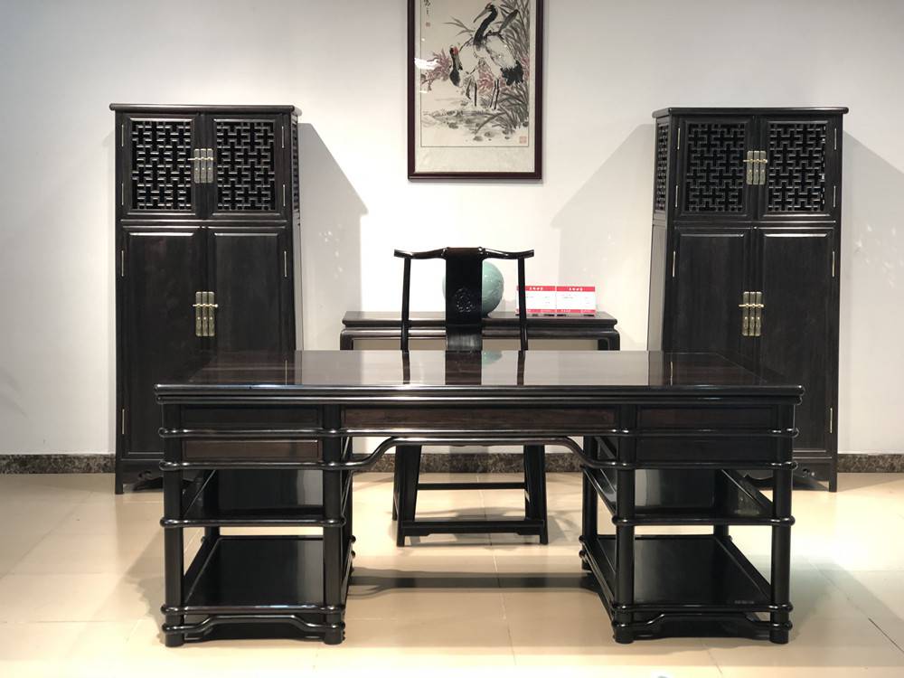 别墅红木紫光檀书房组合家具 黑酸枝办公室书桌书柜配套
