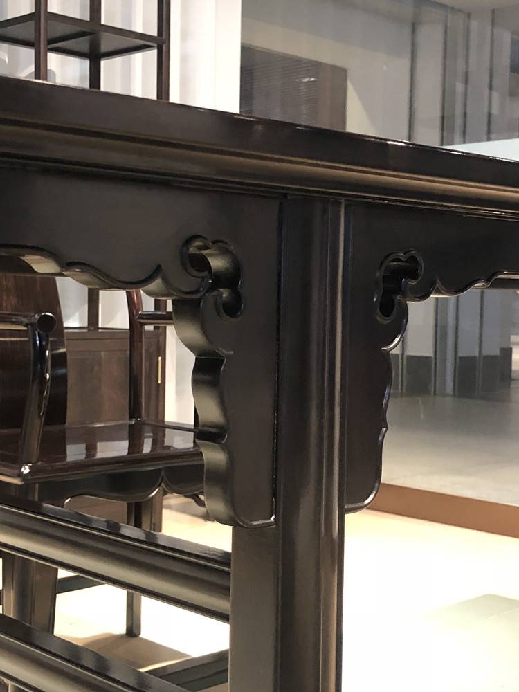 紫光檀家具成品木质圆润浑厚,纹理细腻华美,深沉静穆而不乏自然光艳,色泽变化抑扬顿挫,浑然天成,不静不喧,给人一种庄重朴实、沉穆威严之感。具有高的使用、鉴赏和收藏值。