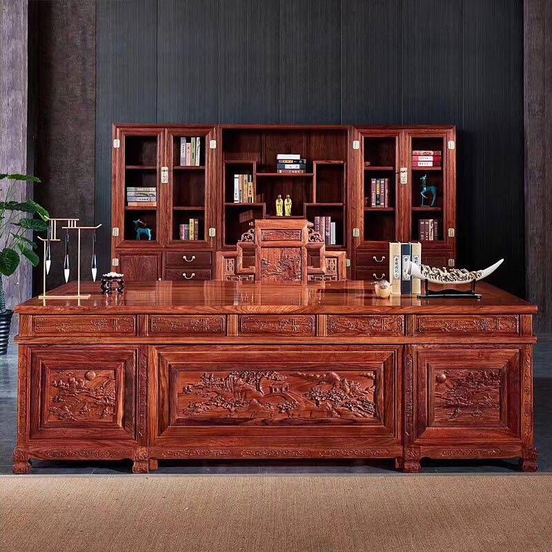珍贵品质花梨木书柜 书架种类 时尚刺猬紫檀书桌办公桌制作工艺