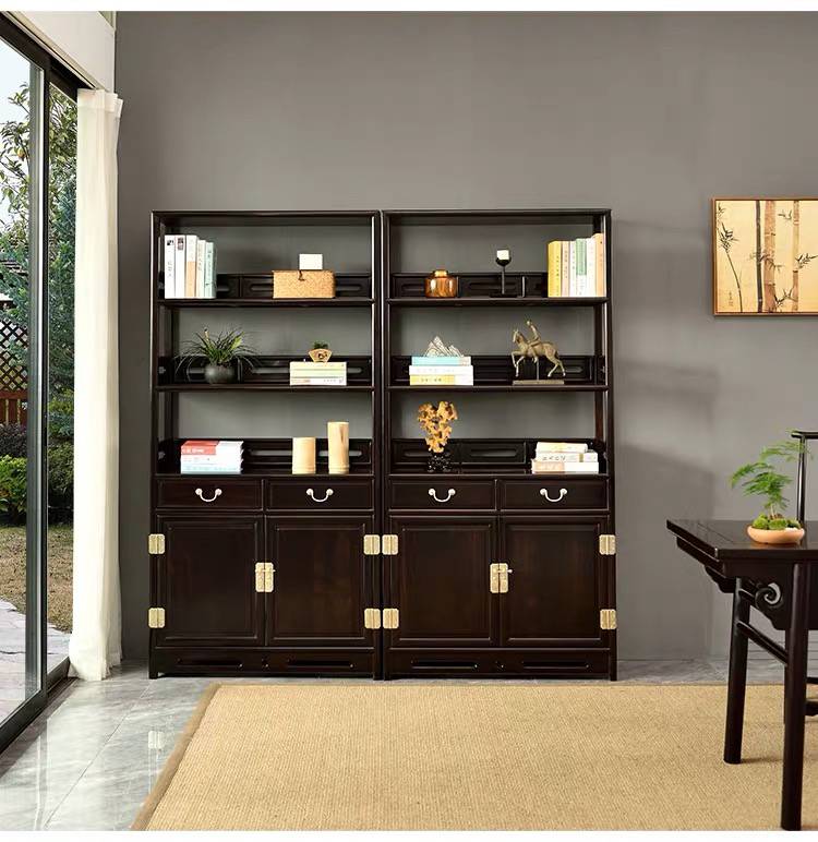 家用红木书架博古架家具 别墅紫光檀标准明式书桌书柜值美妙韵律