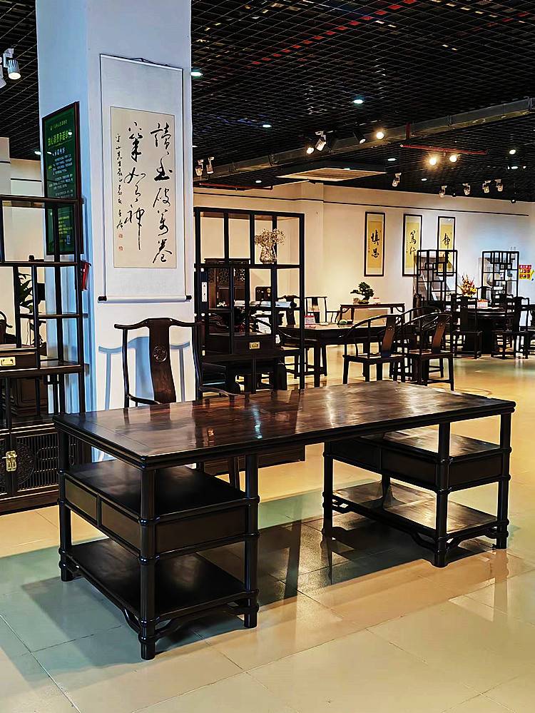 清式紫光檀雕花画案 明式红木架几案 中式红酸枝书桌造型凝孟