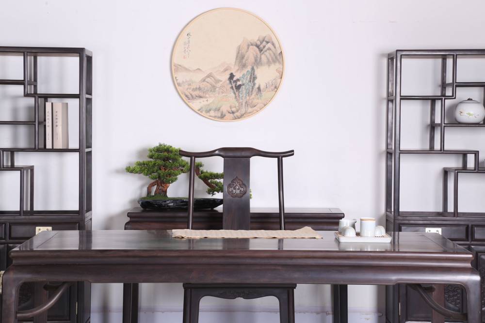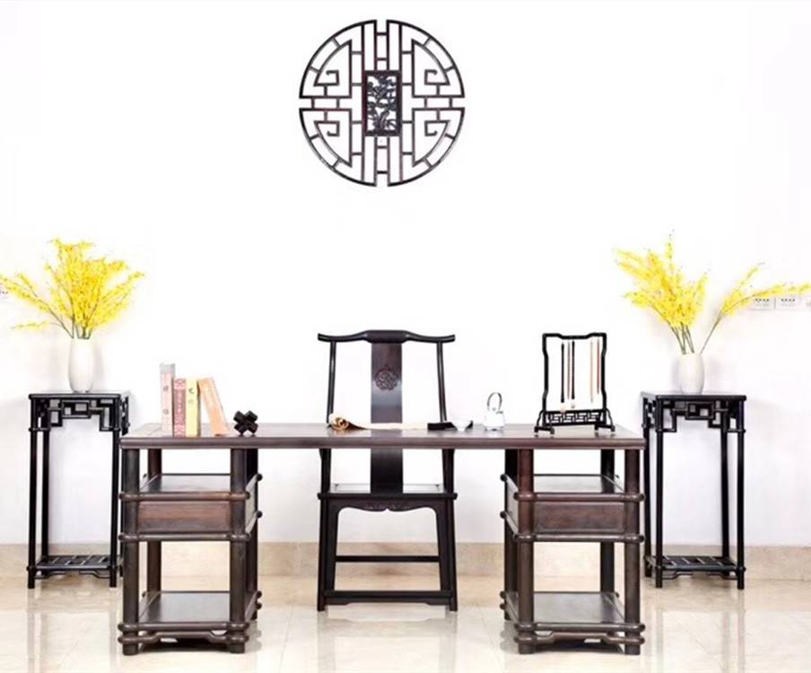 黄檀属书房家具 紫光檀书桌博古架摆放明朗价值感观