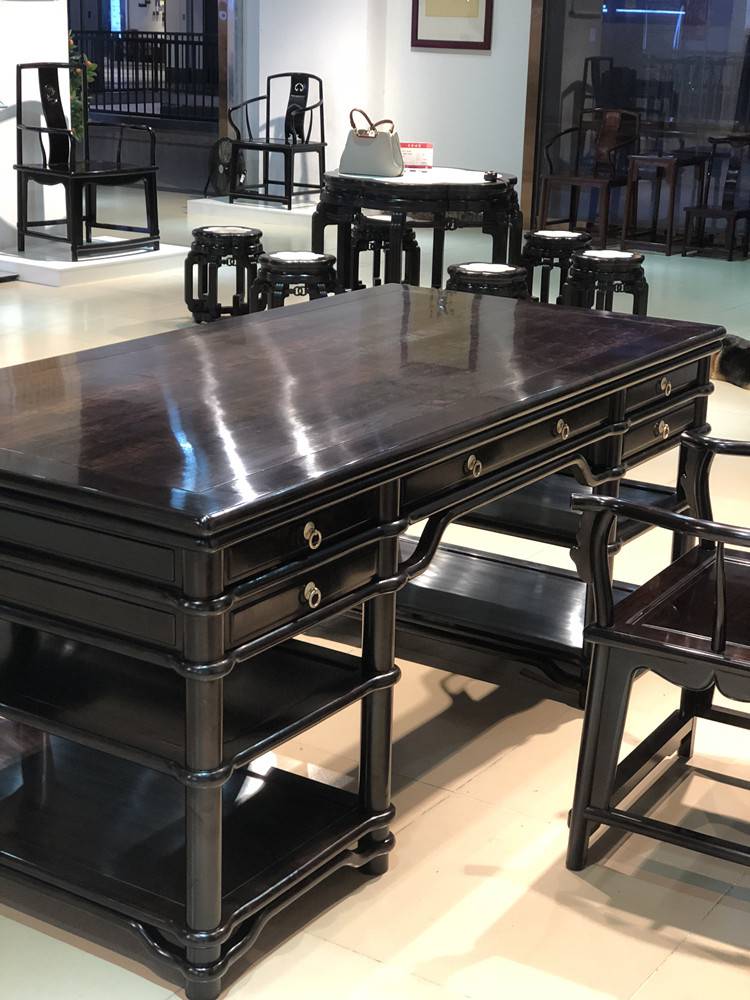 定制别墅红木书房家具 定做紫光檀画案书桌价格表