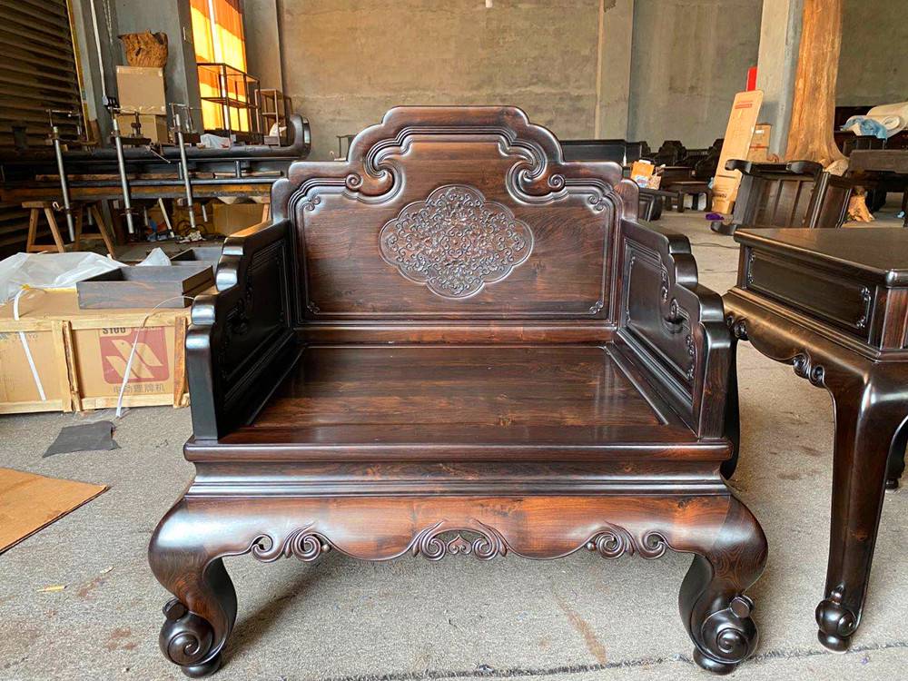 紫檀宝座家具紫光檀西番莲宝座调绘艺术鉴赏