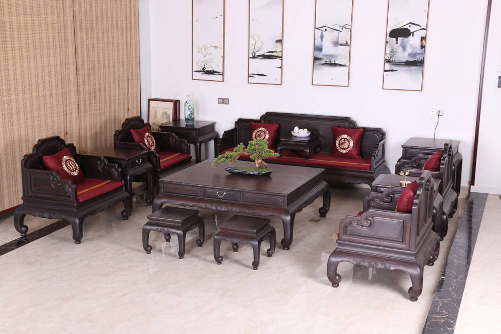 高红木紫光檀西番莲沙发组合 天然古朴小叶紫檀书桌种类