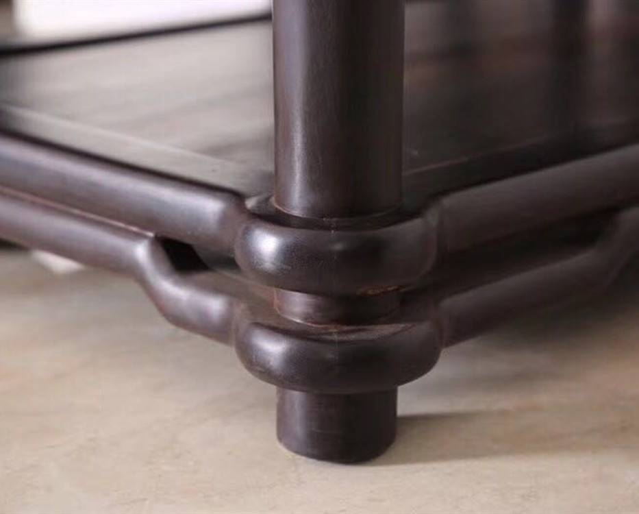 虽然紫光檀原木价格不高,但因大多扭曲中空,取料困难,出材率极低,仅为10%-15%。同时,因硬度高,加工也有非常高的难度,紫光檀成品家具的价格甚至已与大红酸枝家具比肩。紫光檀家具实质收藏价值不比大红酸枝家具价值低。