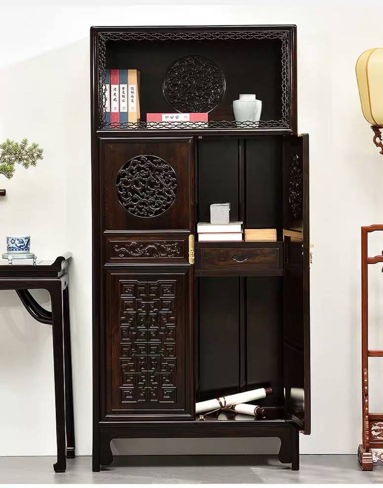 红木万历柜用途 紫光檀书橱家具摆放位置