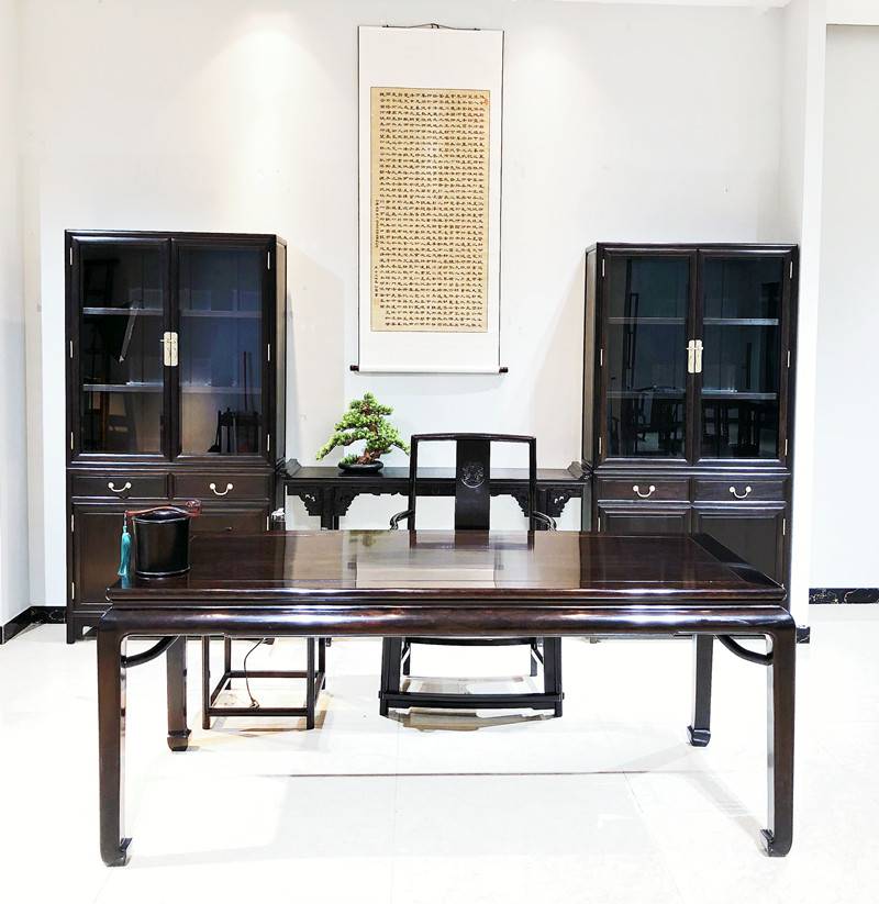 紫光檀书柜搭配家具 红木办公桌书房家具摆设简约大方