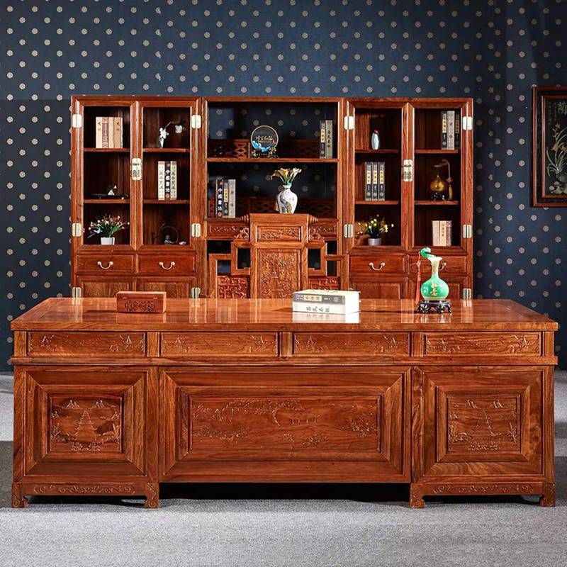 刺猬紫檀花梨木办公家具各种型号尺寸办公桌书柜款式图片大全