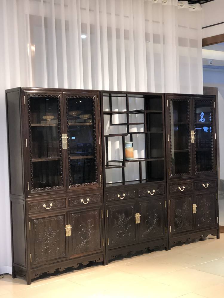 定制 轻奢玻璃门书柜手展示柜红木陈列收纳储物柜子 黑酸枝家具