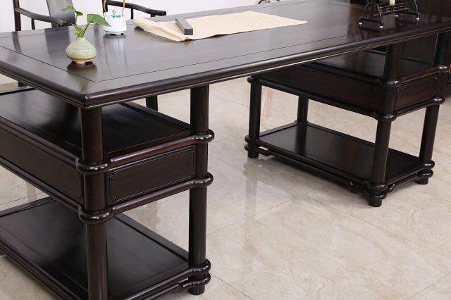 如在古典家具设计中,使用黄色或红色系的红木,或者细腻的黄杨这样暖色调的木料与东非黑酸枝搭配,作为一种色调上的补充,可以使家具在稳重的气氛中出生动,达到和谐而不压抑的意境。适于制作成堂的仿明式或清式厅堂家具、书房家具,可以达到文雅中突出沉静穆古的氛围。