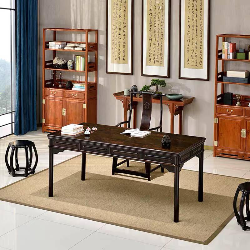 红木书架 中式仿古书法台 紫光檀写字台 明清古典家具