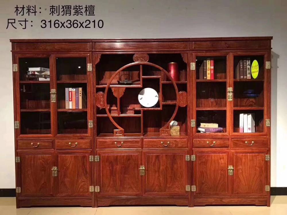 中山红木花梨木书架 名琢红木刺猬紫檀明式博古架大全