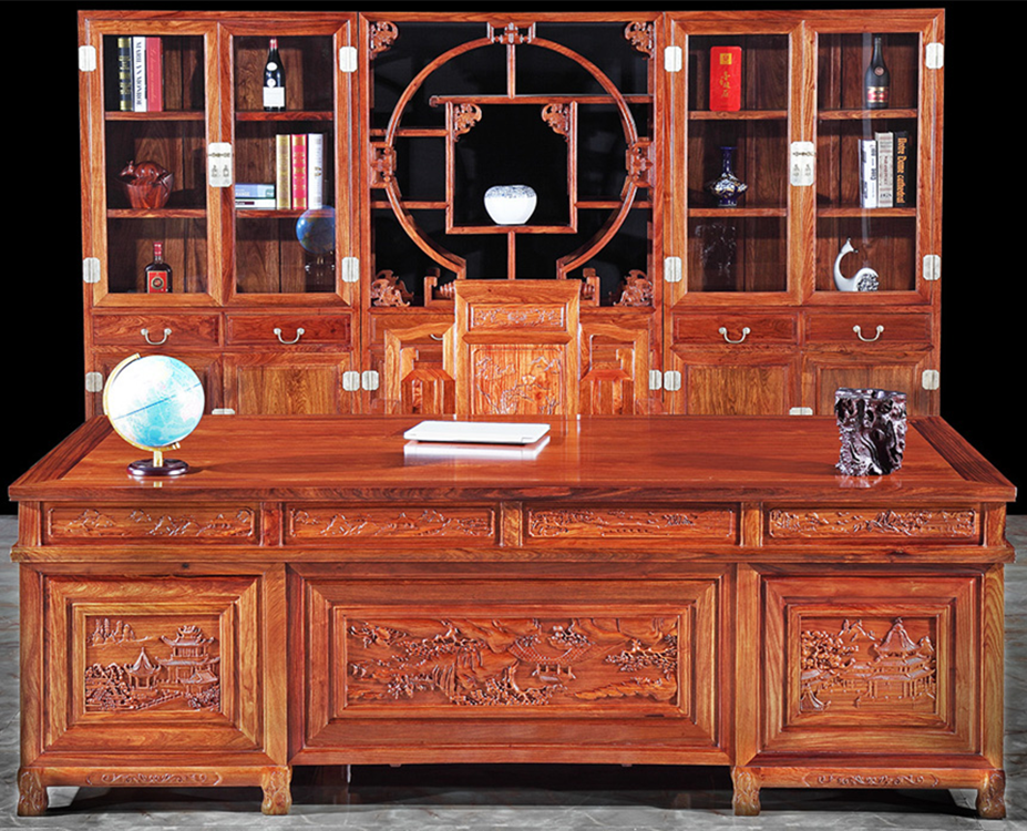 红木办公柜架类家具 非洲刺猬紫檀书架书柜一套价格