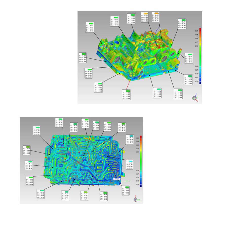 美尼克的激光三维测量技术能 地实现机械零件的无损检测。相比接触式检测方式,激光三维扫描速度更快,数据更全,灵活性更高,对复杂的曲面,同轴度,圆柱度等传统方案难以检测的部位也能轻松获取三维数据。手持式三维扫描仪在不对机械零部件造成二次伤害情况下可获取精确可靠的三维数据,从而获得偏差色谱图,得出完善的修正方案,大大提高检测效率,减少时间和人力成本。