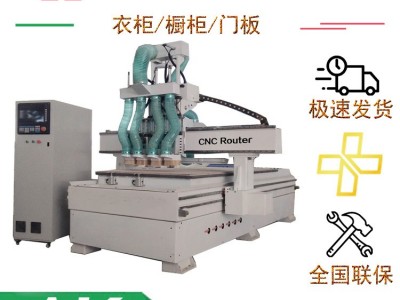 柜体开料机专为板式家具、定制衣柜橱柜设计,可搭配3个或4个主轴以程序控制可任意切换,能够轻松完成客户设计的3道工序打垂直孔、下料、拉槽(加工工件要求换刀3把以内),即省去了中间手工换刀的繁琐。湖北鄂州整体衣柜开料机赶快抢购了