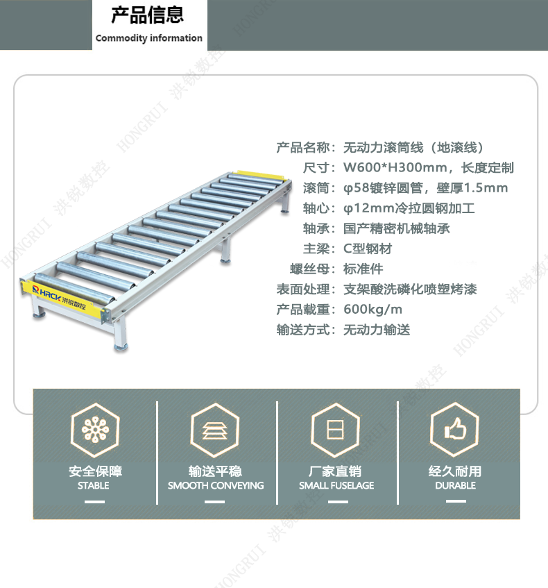 HRCK-洪锐数控厂家专业生产定制板式家具地滚线,封边机左右连线,无动力滚筒线,滚筒输送机,定制家具整厂生产规划一站式解决方案,设备承重能力强,耐腐蚀,安装方便,支持非标定制。