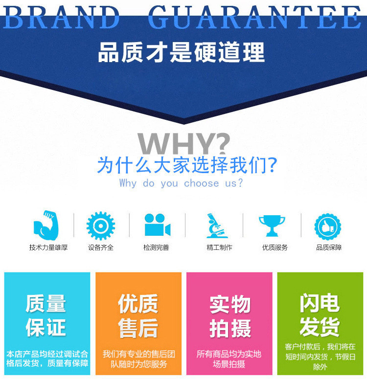 质量承诺:与客户签定合作合同后,将按合同规定发货日期将设备发出,上门安装、调试、免费指导、保证在设备安装后一周内正常生产,所产产品达到国家规定的质量标准。